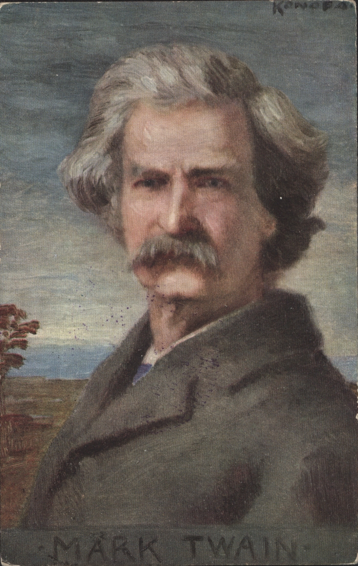 Марк Твен / Портрет върху пощенска картичка / Рисунка