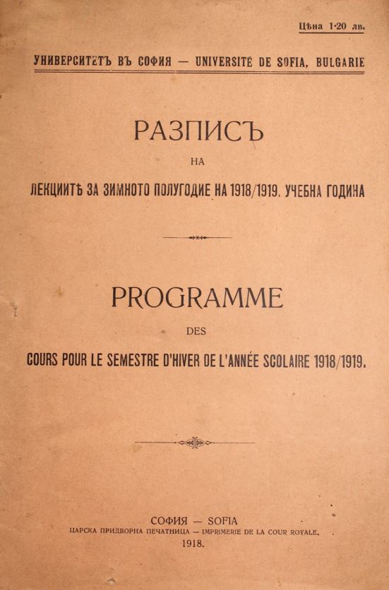 Разписание на лекциите в Софийския университет за зимното полугодие на 1918/1919 учебна година