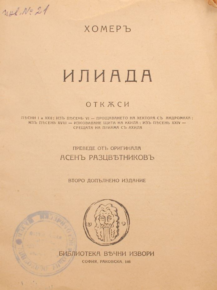 Анотация: Включва: Песни І и ІІ; Из песен VІ - Прощаването на Хектора с Андромаха; Из песен ХVІІІ - Изковаване щита на Ахил; Из песен ХХІV - Срещата на Приама с Ахил.