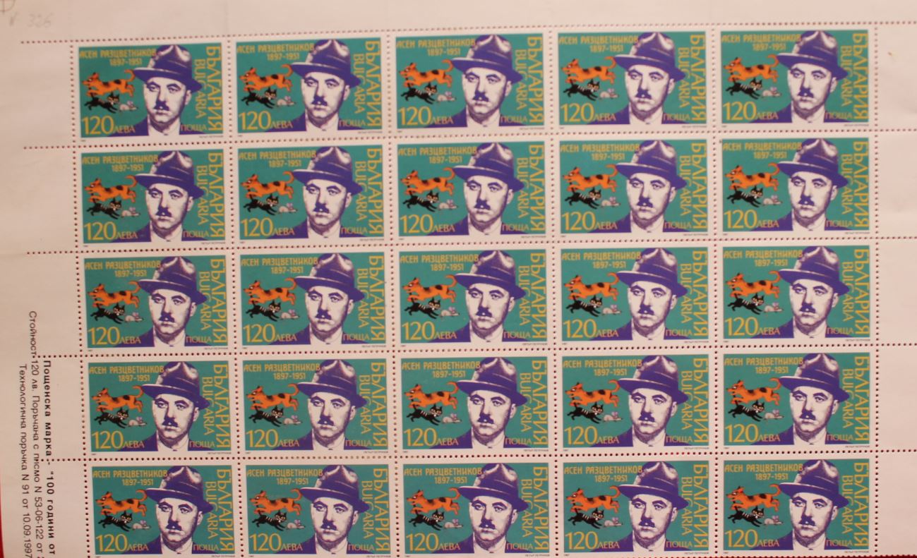 Пощенска марка - "100 г. от рождението на А. Разцветников. 1 лист - 50 бр." / Марка