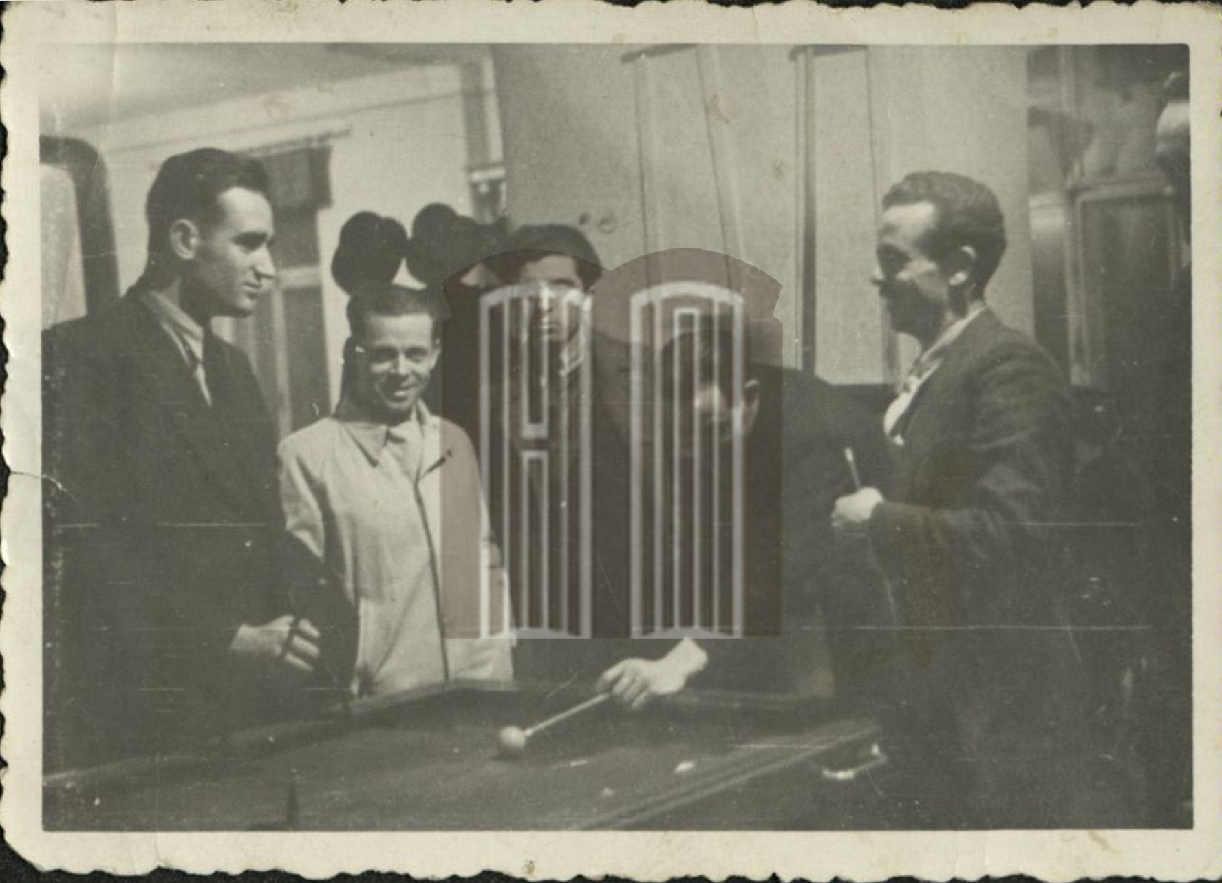 Антон Попов, Стоян Сотиров, Михаил Матеев, М. Сматракалев, Кирил Николов в кафене "Средец"( 1941 г.)
