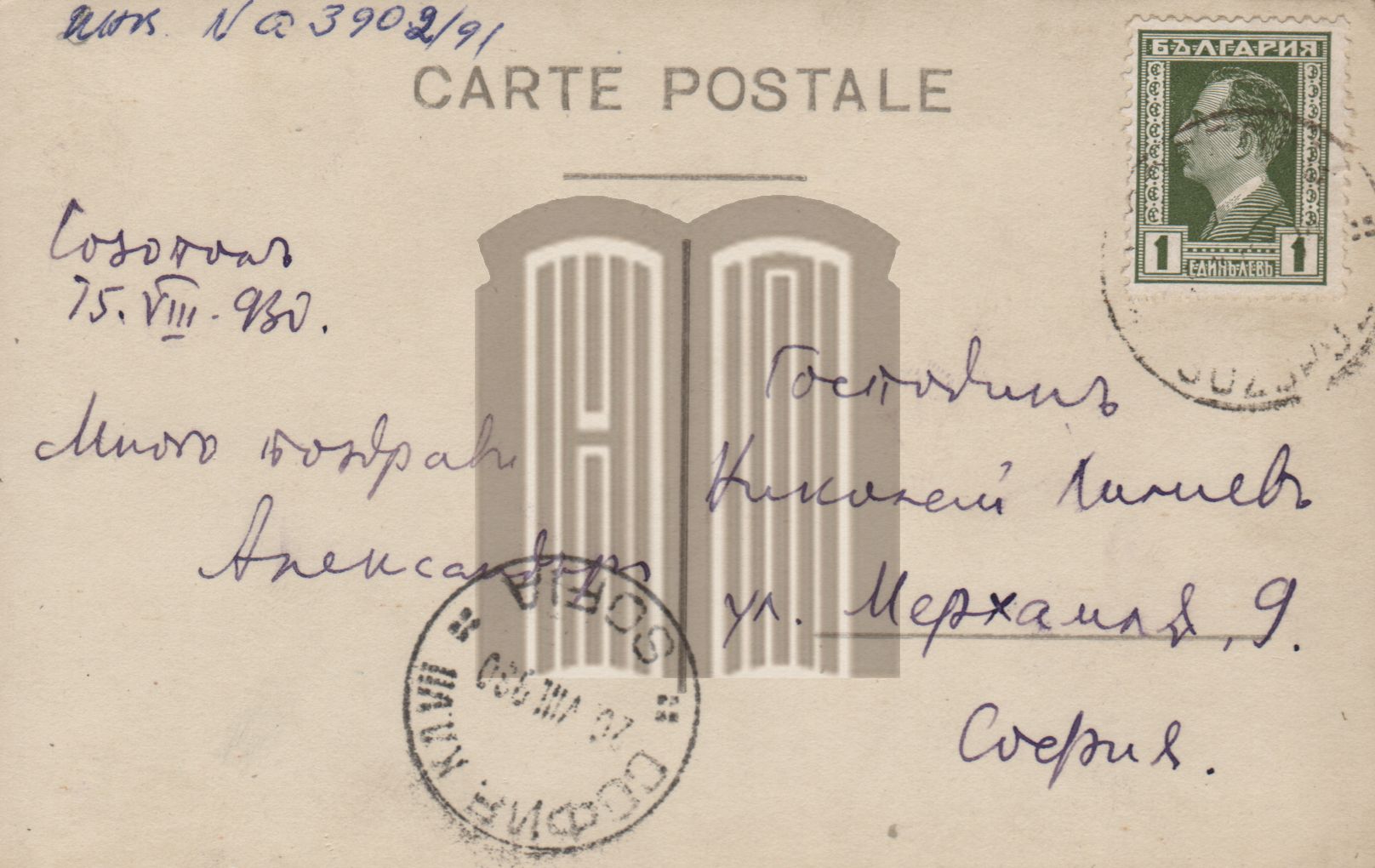 Поздравителна картичка до Николай Лилиев от Александър [...] / картичка