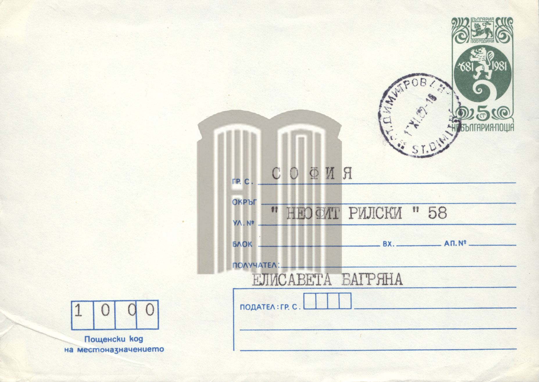 Писмо от почитател до Елисавета Багряна. / Писмо
