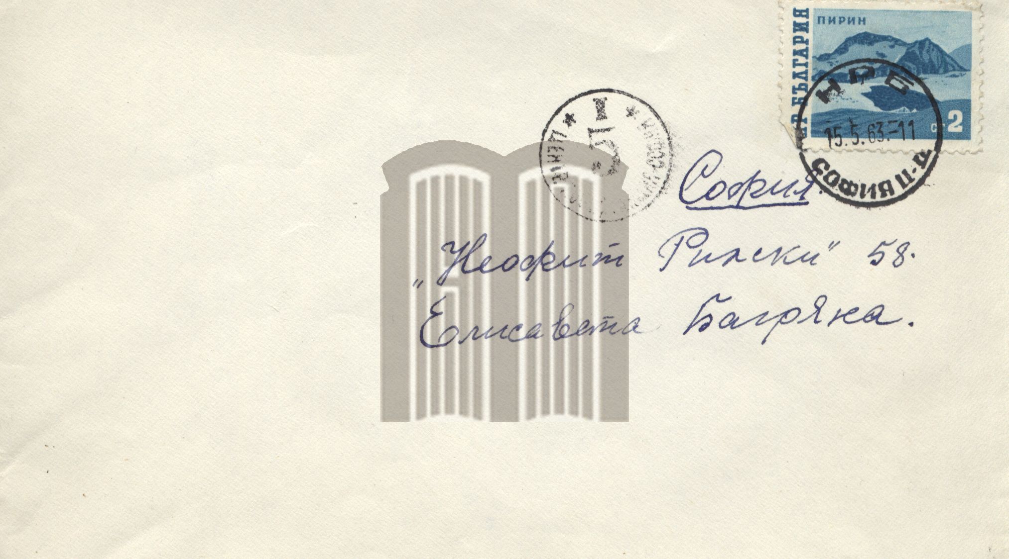 Пощенски плик от писмо от неизвестно лице до Елисавета Багряна. / Кореспонденция