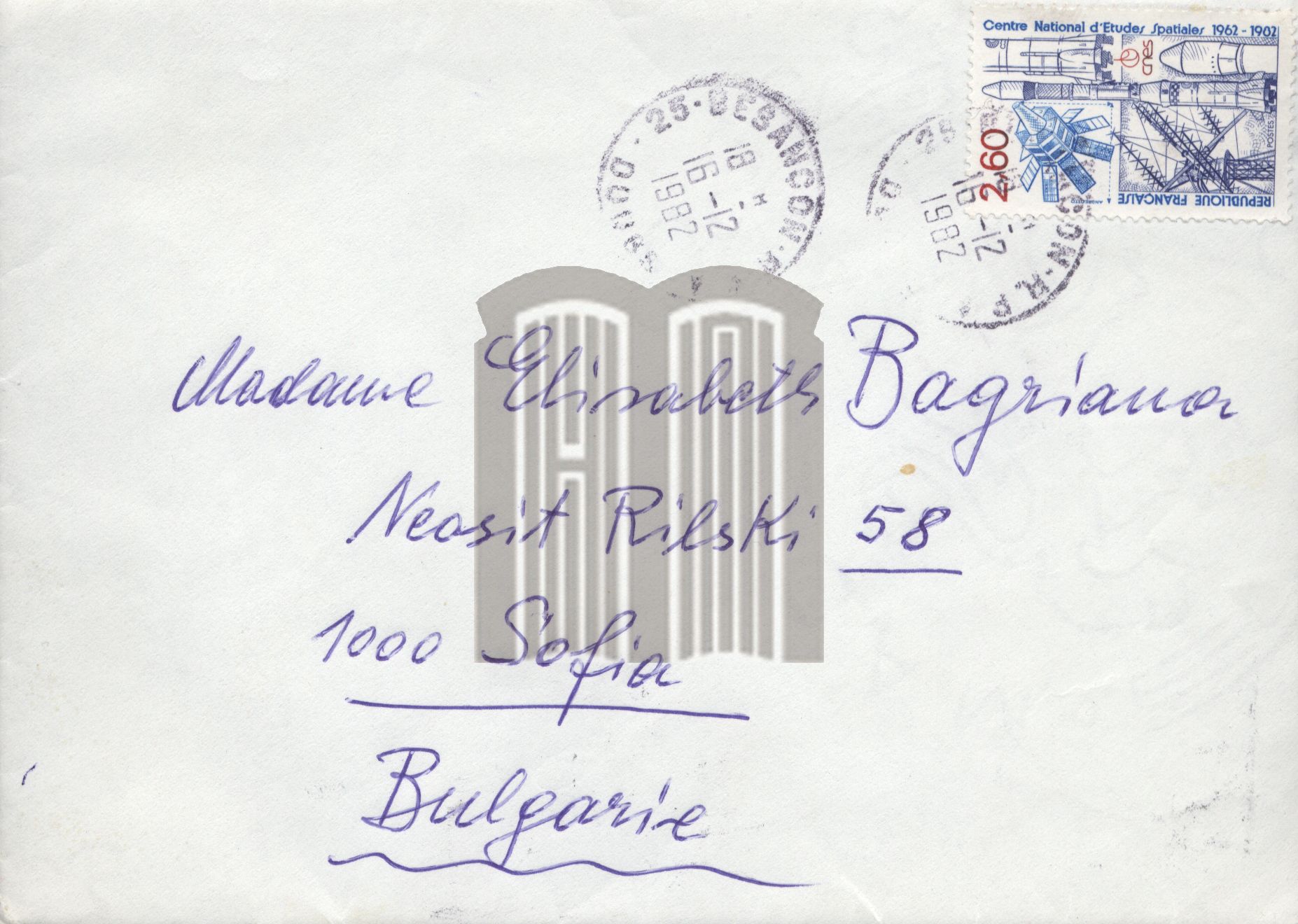 Анотация: Писмо от Долорес... до Елисавета Багряна, на френски език. Франция, 17 дек. 1982 г. Има и чернова на отговор от Елисавета Багряна до Долорес, на френски ез. Б. м., 9 януари 1983 г.