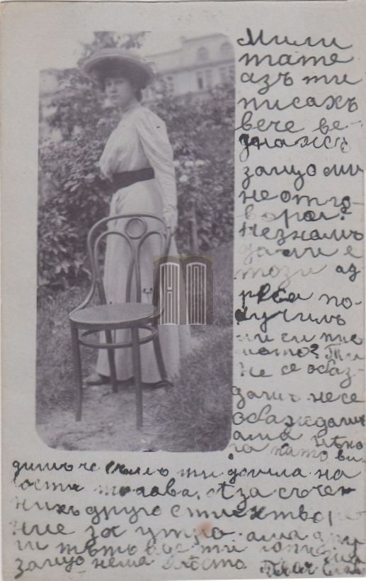 Снимка на Лора Каравелова. Отстрани има писмо на Светослава Славейкова като малка.